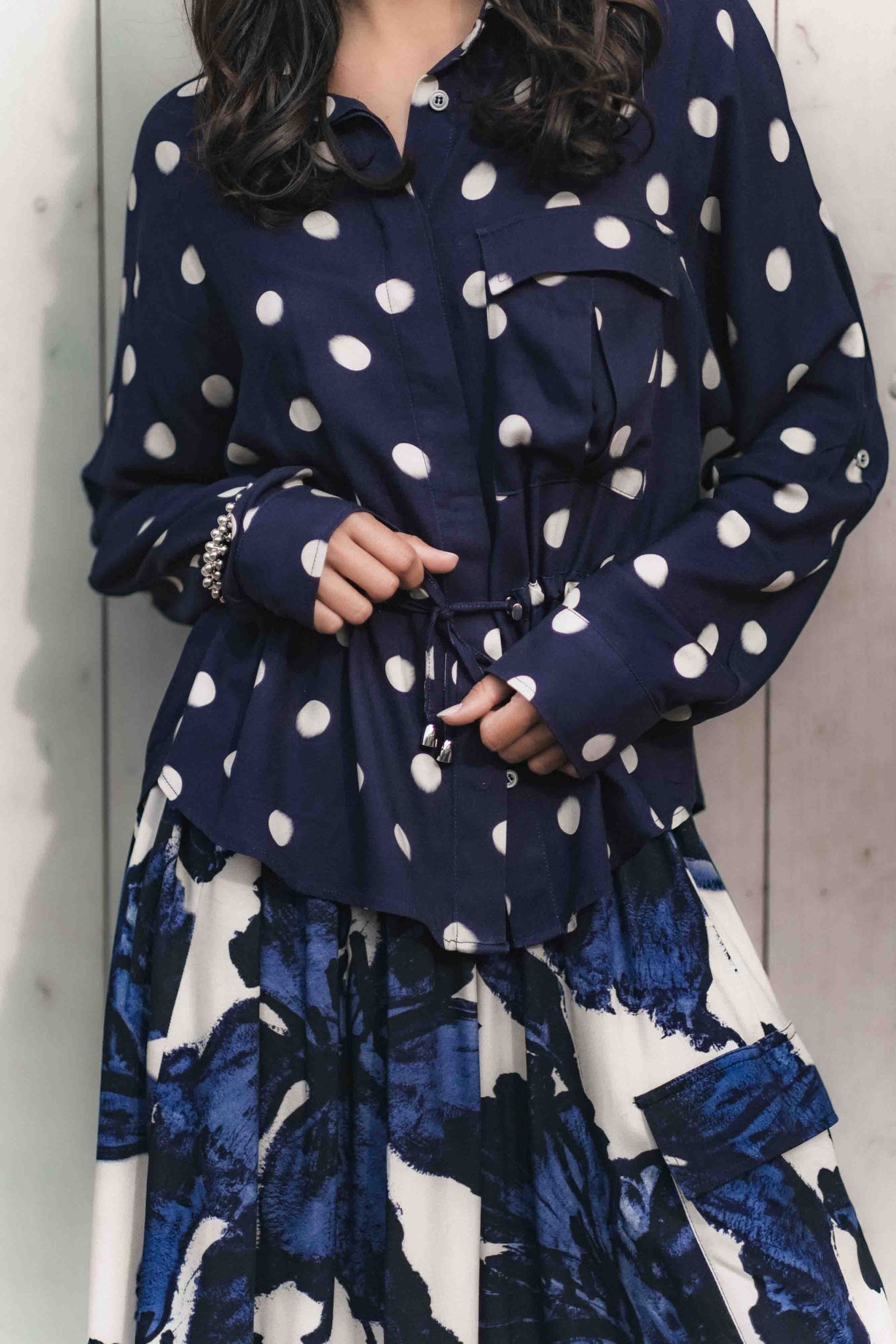 Une chemise pensée pour suivre tous les mouvements. Avec ses passants réglables à la taille et ses manches à retrousser, elle s’adapte à toutes les envies. L’imprimé pois oversize ou les grandes fleurs vibrantes signent l’allure, entre douceur assumée et caractère. À porter ceinturée pour marquer la silhouette ou en version loose, au fil du jour.